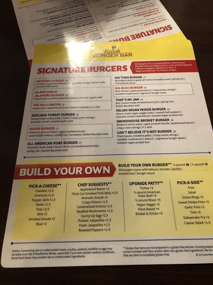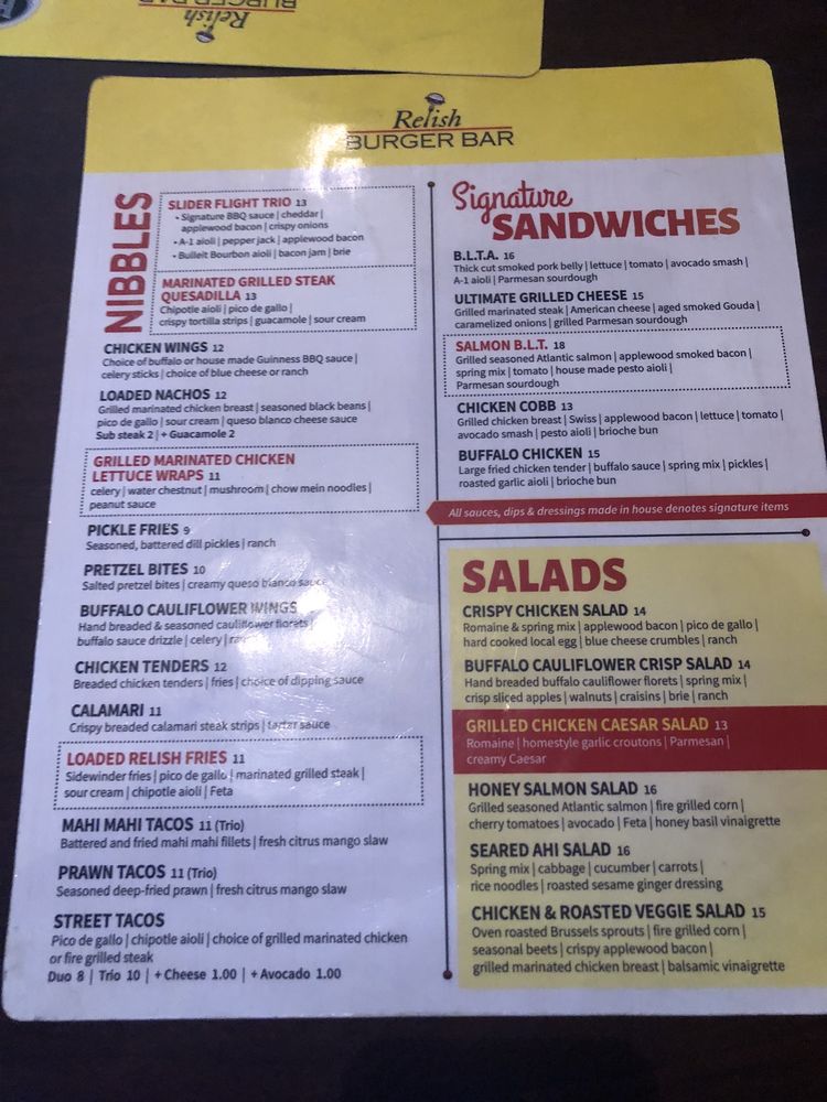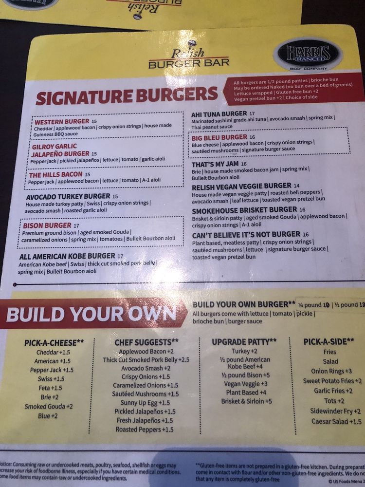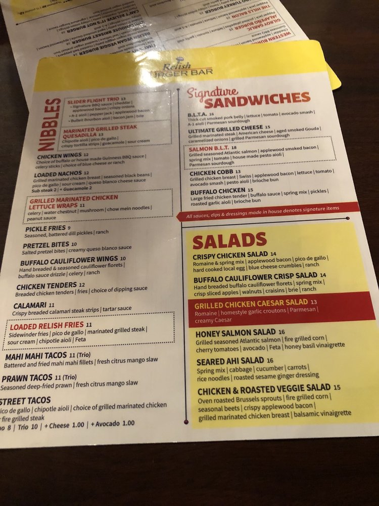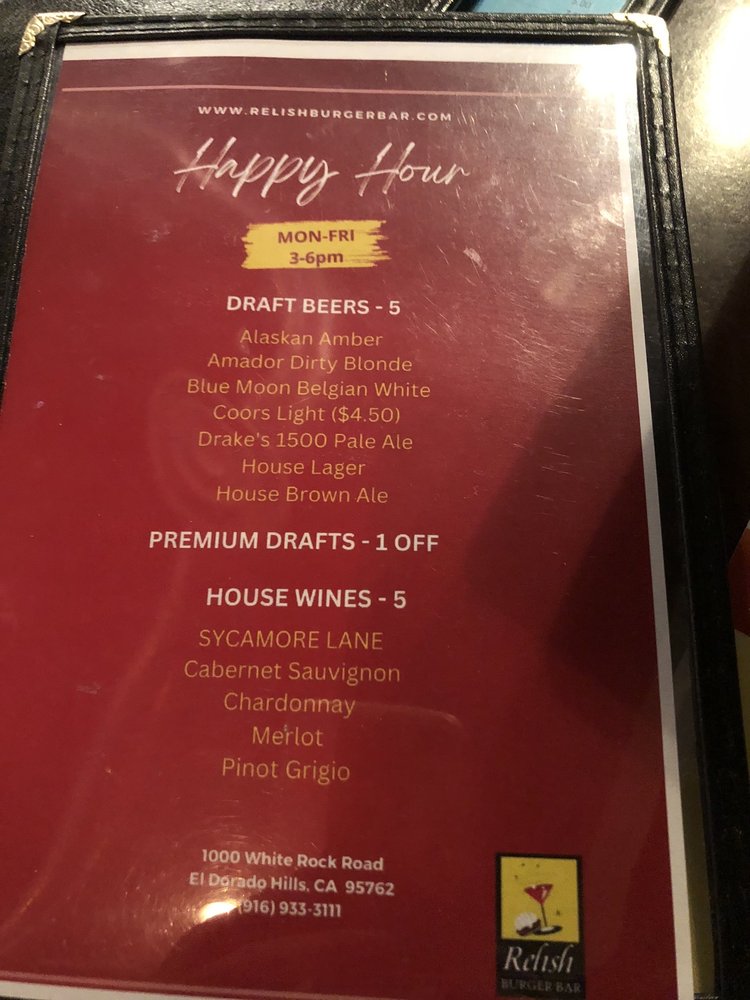 Introducing Relish Burger Bar, a casual dining spot in El Dorado Hills offering a wide range of options for burger lovers. Known for its friendly service and vibrant atmosphere, this restaurant caters to both families and friends looking for a great meal. The menu features delicious apps like Chicken Tenders and Chicken Wings, along with tasty salads and mouth-watering sandwiches like the Chicken Cobb and Salmon Sandwich. Customers rave about the flavorful and juicy burgers, with options for gluten-free buns and vegan choices. The relaxed setting, full bar, and outdoor seating make it a perfect spot for any occasion. Don't miss out on their Happy Hour specials and the opportunity for kids to eat free on Sundays. Relish Burger Bar is a must-visit for those craving a satisfying burger experience.